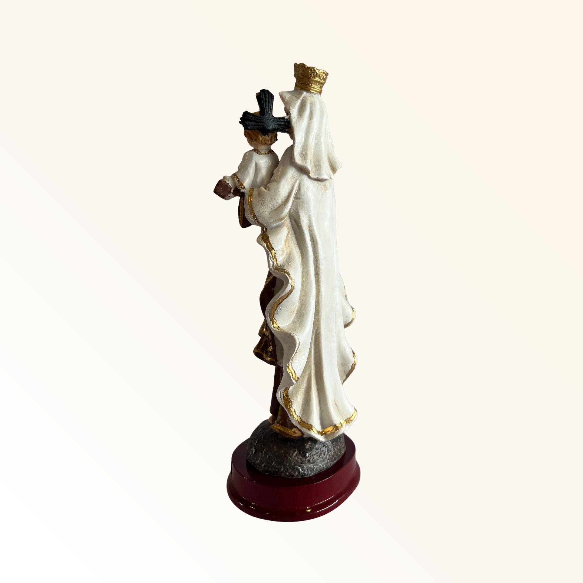 Con el Niño en brazos y el escapulario en sus manos, recuerda la fe que acompaña y protege en cada trayecto.